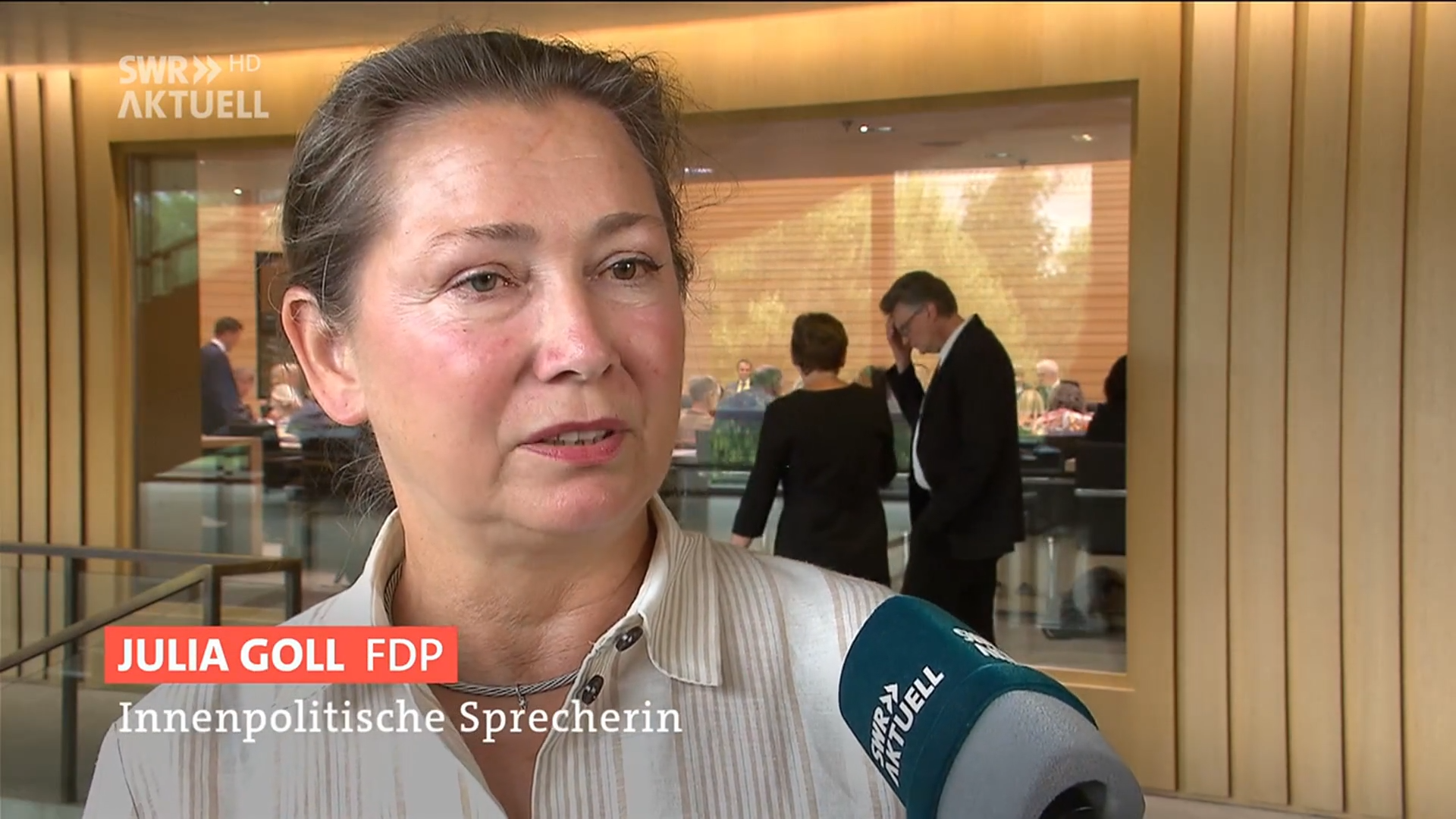 23.06.2023 Innenministerium lässt mutmaßliches Opfer im Stich Konstruierte Vorwürfe stoppen Solidaritätsaktion für das mutmaßliche Opfer des IdP. SWR-Landesschau mit Statement von Julia Goll. Weiterlesen